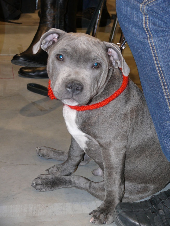 Видно сразу,что кобели-девочки изящнее.А щенок стаффа прямо как плюшевый