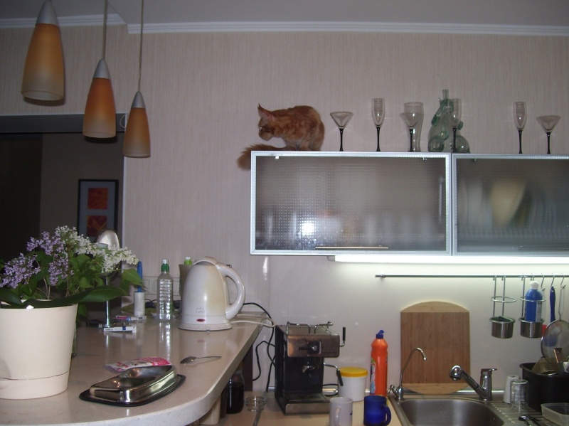 Это, наверное, семейное у них - захожу на кухню, Лем сидит на варочной панели и смотрит на меня честными медными глазами