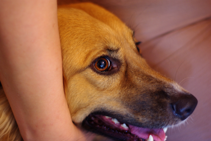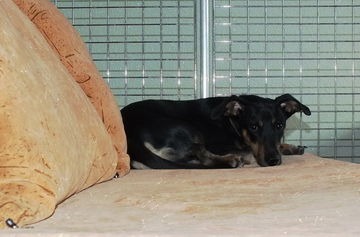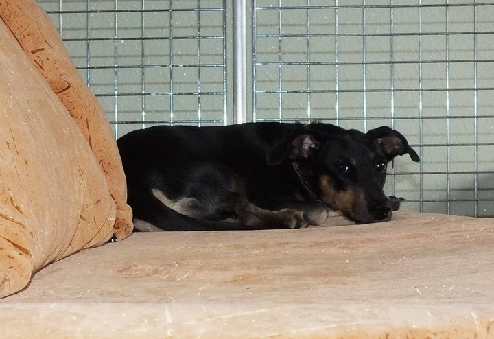Сима стала спокойнее, но все рано от посторонних убегает под диван.