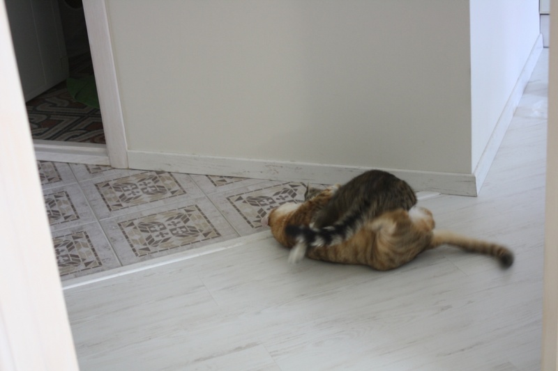 летают коты/кошки, за ними книги, бумаги, перевернутые чашки кофе, следом мчится щен, за щеном я вытащить то , чо скинули со стола "добрые коши" Делятся лежанки между котами и собакой , пьют и таскают еду друг у друга с разбоками, в лотки нужно всем и сразу , щен первый месяц залезал в кошачий лоток пописать-пример же был ,пролитый Персил гель вот позавчера отмывала часа 2 с пола-производитель не врет, концентрация хорошая,