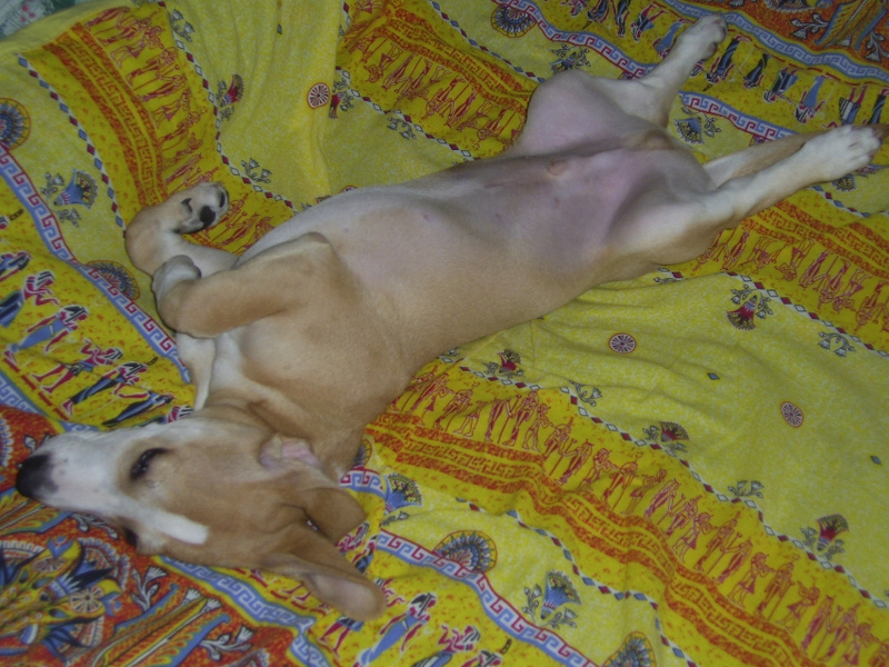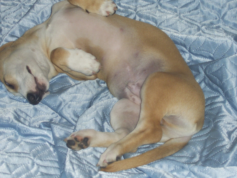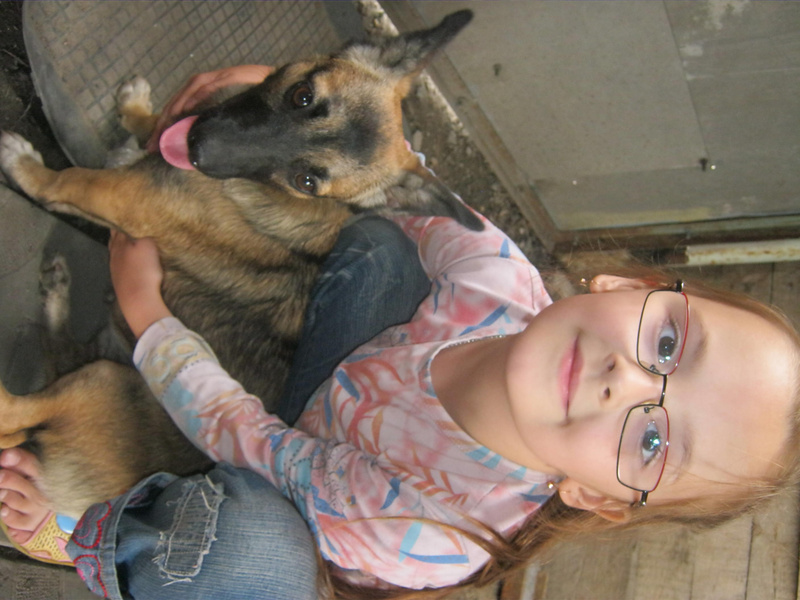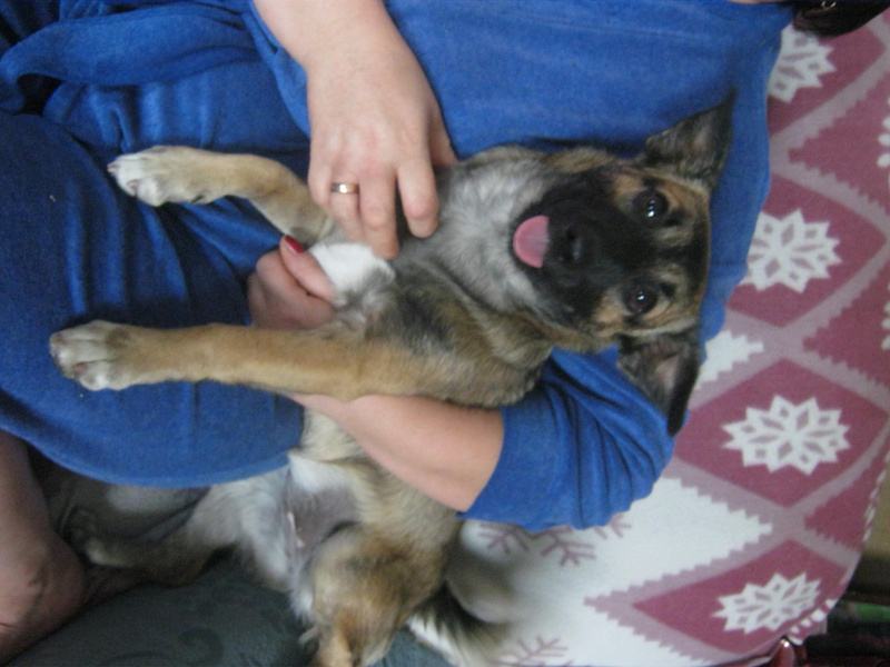 Джину нашли на К.Маркса истощенной крохой (скорее всего, коробочники эти *** выбросили ). А теперь она упитанна и выглядет смешно, как овчарка на таксячьих лапках.