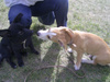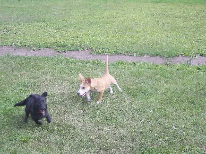 Сегодня Беняшка гулял с Джиной. Поймать этих активных ребят было почти не реально! А Джина такая смешная и чудная девчушка Ей тоже 4 месяца. Дома с двумя кошками уживается, так и повадки переняла. Передними лапами по мордашке Беняку нашлепала, а задними отпихивалась