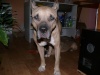 Так Оддька замучила, достаёт его, кусает за пятки, локотки, за шею танет-это она его на игру провоцирует. Он, конечно, играет когда хочет, но частенько и не хочет, либо не обращает внимания на неё, терпит, либо начинает рычать. Но вот когда он хочет спать, к нему лучче не лезть(а она лезет)