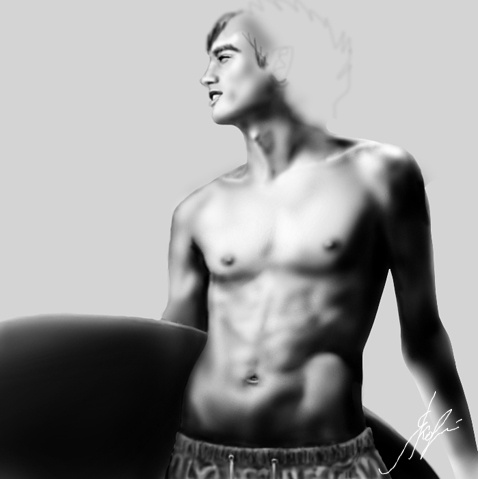 что касается моих рисунков в фотошопе - это всё так же как на бумаге происходит: есть холст, есть кисти различных конфигураций, есть краски.. но я люблю рисовать чёрно-белые изображения, и использую в основном только 2 вида самых простых кистей - просто круглую и круглую с размытыми краями. всё. дальше всё - точно как на бумаге: делаем набросок, прорисовываем детали, заполняем фон.