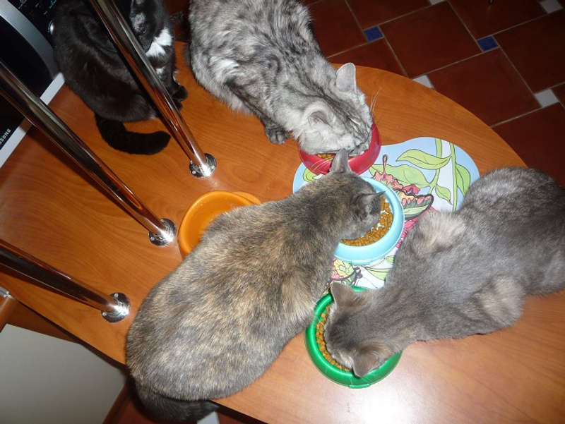 А миски у нас похожие, я покупала: знаешь такие из медицинской стали, две, на подставке?