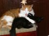 Ааааа, у него еще так прикольно: за ушками шерсть совсем светлая. Еще когда брала его, не поняла, показалось, лысина за ухом. А уже дома стало понятно: за двумя ухами и не лысина это вовсе. Такой вот смешнючий: одним словом, блондин.