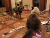Таня, посмотри, они всей толпой с круглыми глазами выражающими недоумение, что это такое?, подходят к этой ШТУКЕ, вкусно пахнущей. Прикольно. А пампушкой этой на пружинке играли?