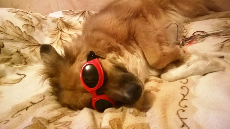 снимать пока не пыталась, но на улице мы их еще не надевали - солнца-то нет.Моя котопесья банда - Фаня, Шаня, Гоша и Маркиза
