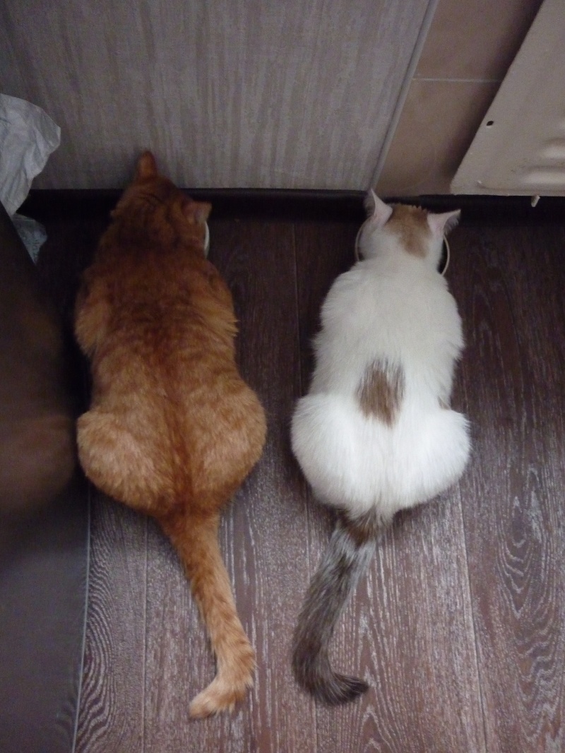 Черныш с очередной подопечнойОн очень добрый. Он всех принимает, за всеми ухаживает. Не то что стерва Бусинка