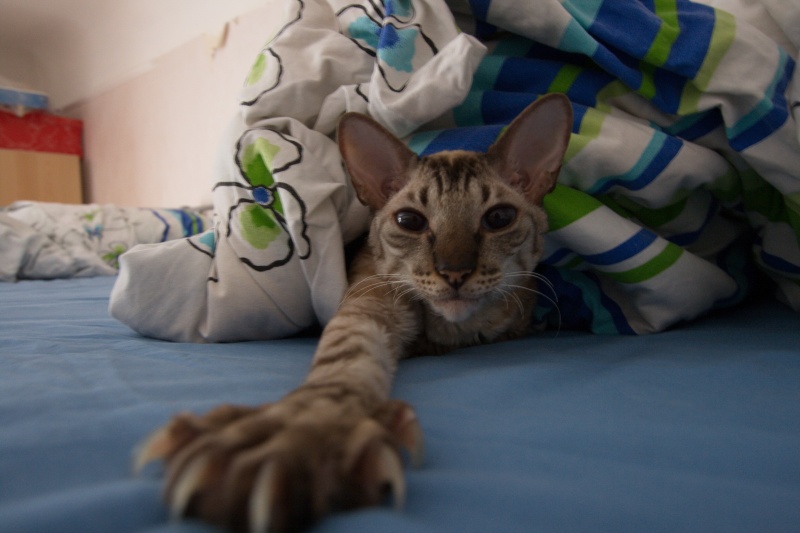 У Ватсона папа Феллини такой - у них в квартире чужие по-струночке ходят... Охотится на всех, кто шевелится...Ответ на сообщение Корниш-Рекс пользователя Kunik