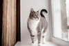 Во время приготовления или потребления пищи кошка не должна находиться на кухне. Таким образом, будет снижена вероятность "попрошайничества"Аха...попробуй не пусти его... Такая истерика будет и обида на неделю.