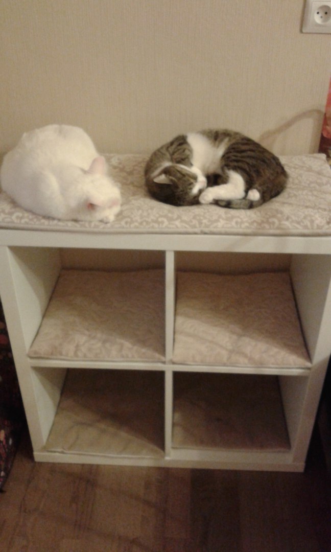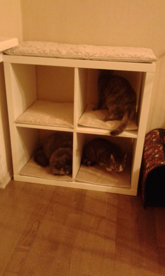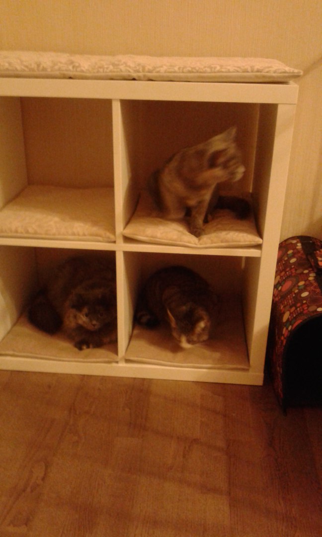 Для тех, у кого много котов.Ха!Мы уже давно Икею освоили!Как раз на пять котожопиков))))Внизу-купе,верх-плацкарта!
