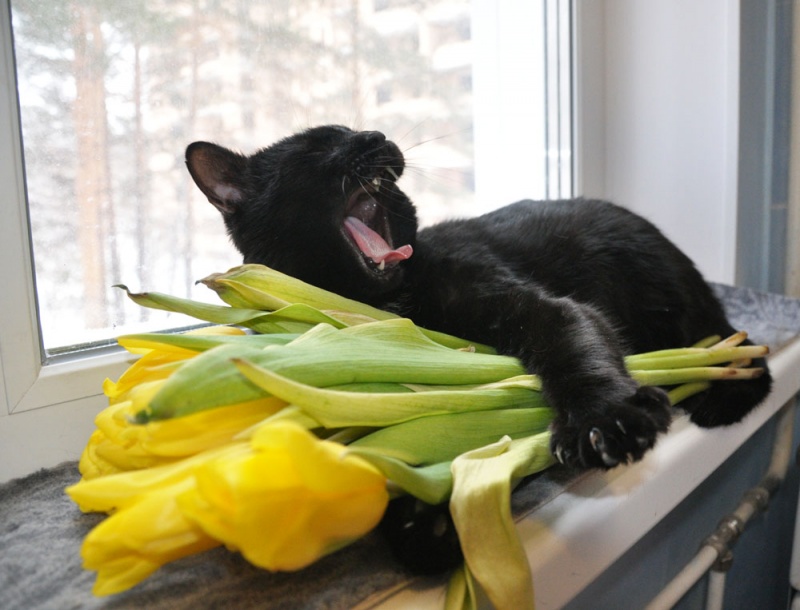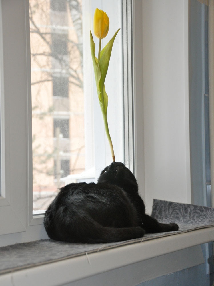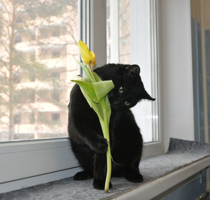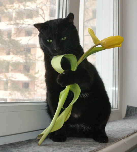Да этот кот просто создан для конкурсов "Кошки и цветы"! С тюльпаном на носу поди круто получилось.