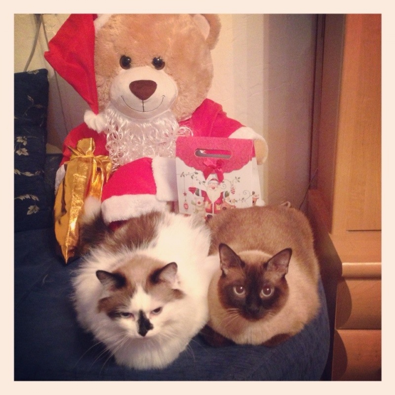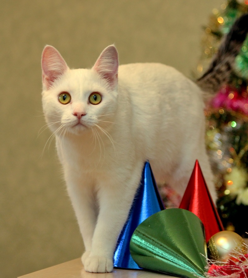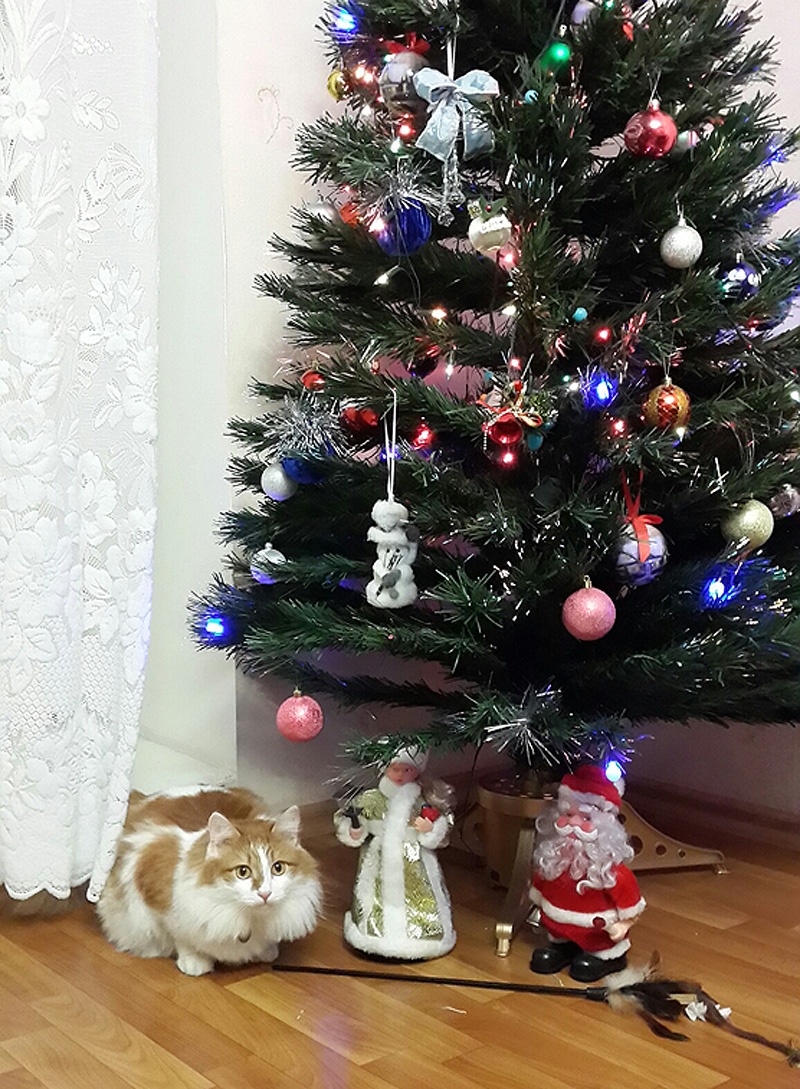 3) К участию принимаются ваши собственные фотографии ваших кошек – желательно хорошего качества, без смазов, затемнений, засветов. Большую часть фотографии должно занимать участвующее животное. По теме - это должна быть фотография одной или нескольких кошек на новогоднюю тему (в любой одежде и/или с аксессуарами, с зелёной ёлочкой, новогодними украшениями, снежинками, дед морозом, снегурочкой, снеговиком и т.д.).