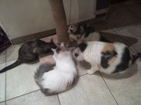 И повадки другие ( Амурчик же, как собачка за мной весь день ходил и с рук не слазил ) еще не очень умеет играть в коллективе, чуть прикусывает, а Чили на него периодически утробно рычит, даже если тот в 2-3 метрах мимо проходит, что не мешает им так же рядом кушать или валяться. Марта старательно лепит из Кирилла Амура. С Амурочкой у них риталы был, с утра она к нему и заваливалась головой в лапы, а он старательно умывал девочку, ну и вообще, как неразлучники были. Кирилл телячьи нежности не очень, да и спать любил больше один. Но Марта его добьет точно ))) неделю наблюдаем, как спят вместе, Марта по привычке лапы на спину Кириллу закинула и пару раз ее умыли. Костя считает, что все больше становится похож на АмураОтвет на сообщение Re: Болтушка (часть 36) пользователя микс