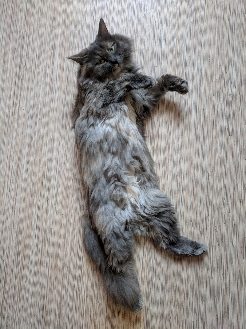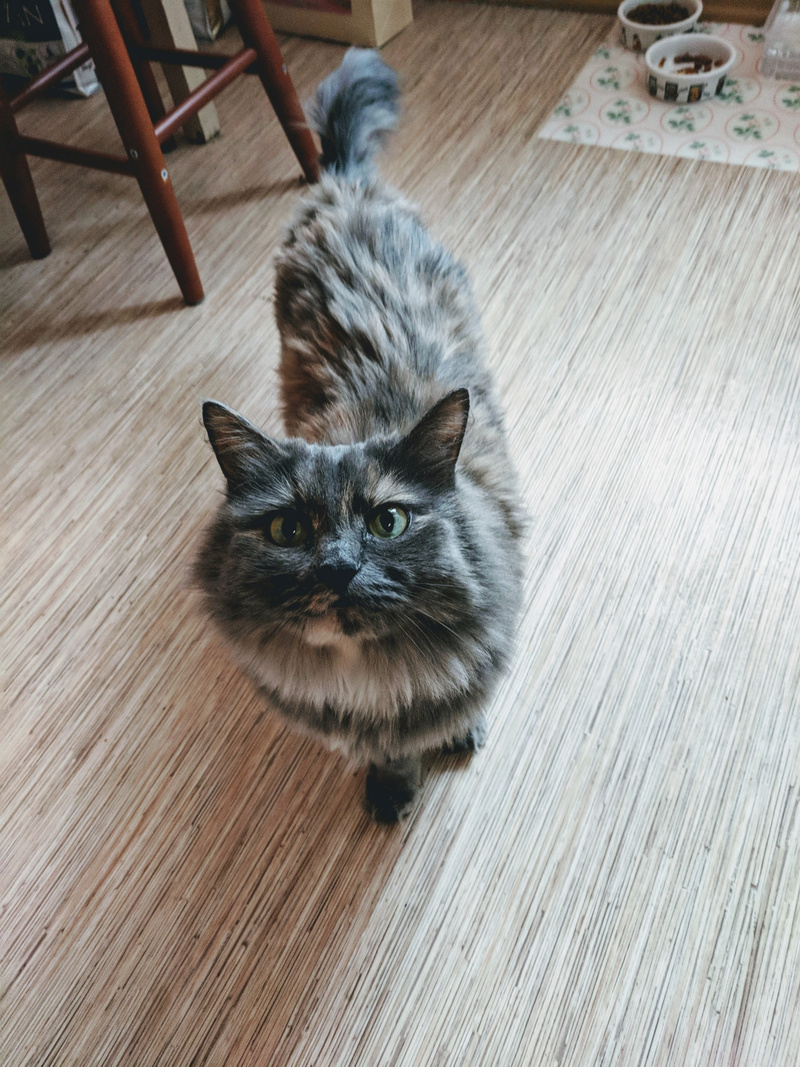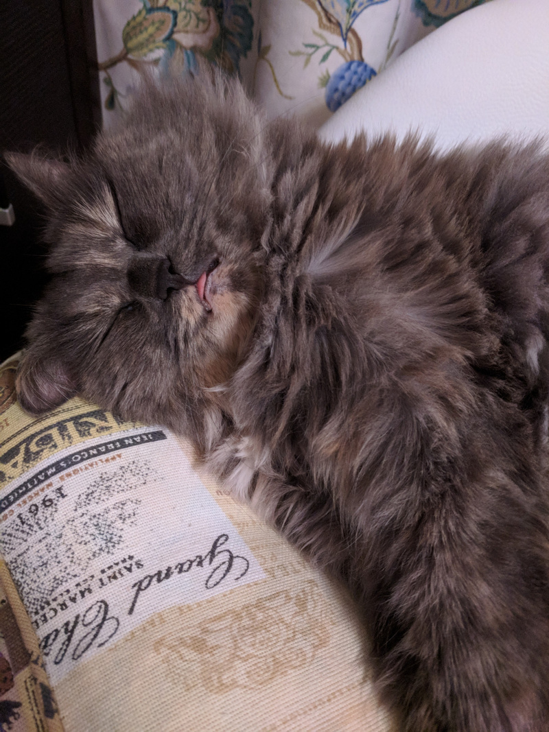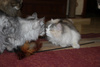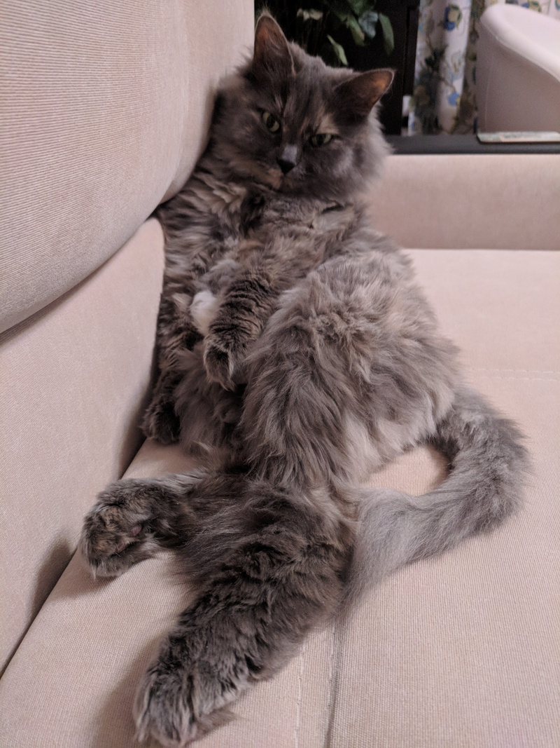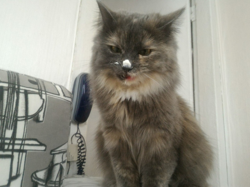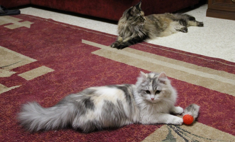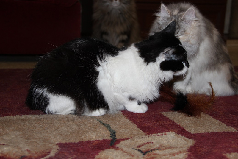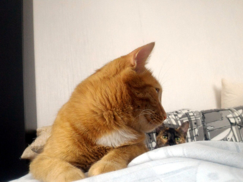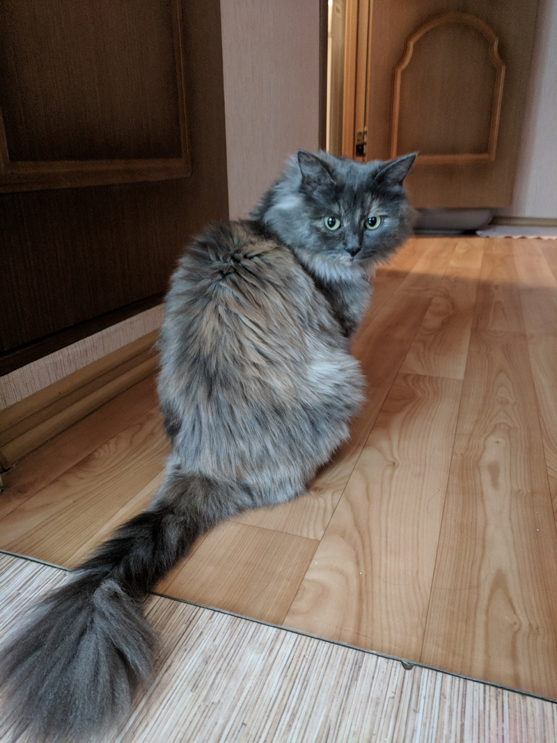 Хитрит до сих пор, когда понимает, что те кто пришел чужие на нее видов не имеют, вылазиет сразу и тарахтит как трактор. Кстати, женщина по Ляле спрашивала насколько громко тарахтит Ляля )) а вышла Марта и затарахтела )))))))))))))))), вот говорю, чуть тише, чем Марта )) А еще у Ляли так же втягивается смешно носик как у Микетия, когда шею чешешь, есть у них нечто общее , а сколько Микентий проживет не знаем-обострения стали чаще, в любой момент ((((