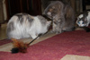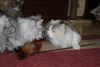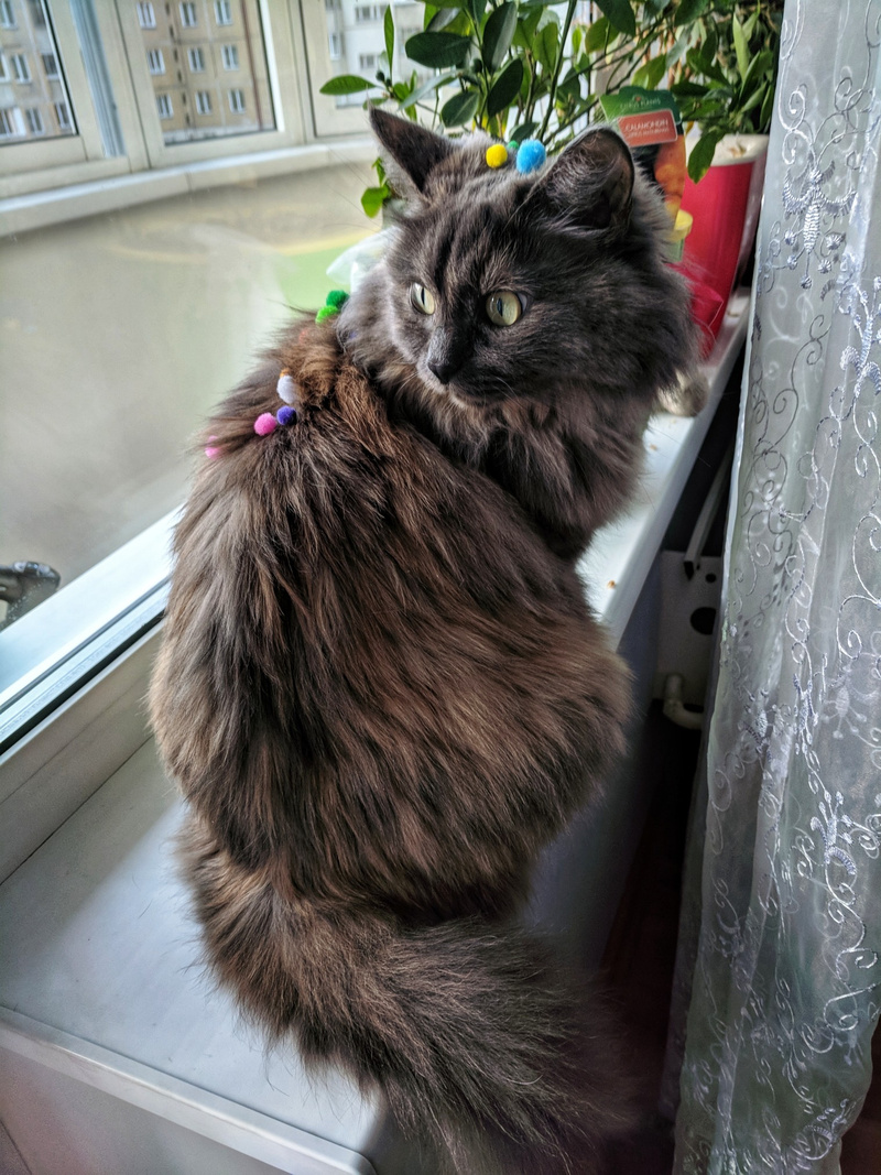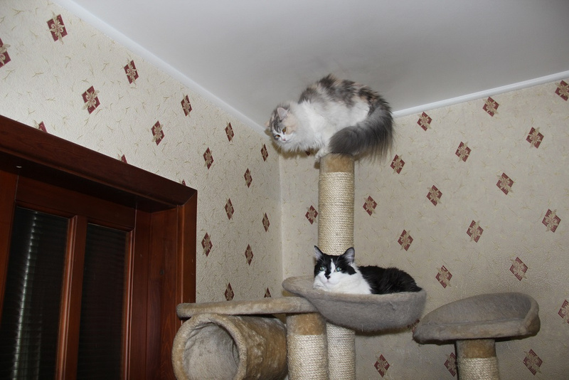 , зафотала Лилин корм , сказала не видела такого, игрушки Лялины посмотрела- она же повернутая на пирамидках с мячиками, про расчески спросила. Ну вроде все как обычно. Но меня оч напрягло, что вопрос про здорова ли кошка прозвучал минимум 2 раза , как я могу гарантировать, что кошка через 2-3-8 лет не заболеет ? Тут детям то при хорошей диагностике достаточно часто пропускают серьезные болезни, а тут кись . Ну понятно, что похоронив кошку и беря новое животное, хочется что бы оно прожило подольше. Но случится может всякое и что тогда ? Будут ли ее лечить ? Или сразу усыпят ? Потом про дачу слова не было, а возникло мимоходом, когда я сказала что когтеточки Ляля любит все-картонные, пальму, напольные с ковролином, котодомики. Женщина сказала , что их киса точила когда то на маленьком столбике, но джут обремкался и муж обернул брезентом ( киса отказалась там драть и пошла на косяки. Да ее никто не ругал, потому что ремонт старый, а когда будет новый не знает, так как баня на даче еще не достроена , но кошек на дачу вроде как не возят. И еще фото показала их кисы на балконе. Застекленный. но сеток нет. Не открывают. Но я знаю что такое застекленный закрытый, пока сетки не появились самые первые . мы так и жили в пред квартире, удохнуть можно в жару . Там еще 4 этаж . В общем, хорошие добрые люди не равно ответственные хозяева , я что то представила Лялю с драным столбиком с брезентом и на 4 эт без сеток , мне стало грустно (( Разошлись на том , что они кису едут еще смотреть и потом если она нас устроит а Ляля их т привезем. Хотя к концу диалога я для себя решила, что туда Ляля не поедет и оч рада была когда потом получила смс что выбрали другую кису, потому что объяснять "почему нет " я не хочу . У них свой взгляд на некоторые вещи, у нас свой. Когтеточка конечно убила , всегда же можно кусочек ковролина налепить на досточку, даже если нет возможности купить новую , но косяки устраивают, ведь это все до ремонта, а что потом ? Кошке ж не объяснишь, что те старые можно было драть, а вот тут новые и их нежелательно. Да и Ляля привыкла к некоторому уровню комфорта. Ей теперь если место на котодроме под потолок не достается ( и не только ей ) она у Марты научилась чрез окно залезать на высокий шкаф ))) Получается , не очень хорошо она может жить и у нас )) А получше будем искать конечно )) Оч хочу ее в компанию к кошке или собаке ( после Чармика кошкам на собак уже все-равно )), такой резвяк стоит смешной, друг через друга перепрыгивают, то мячики делят с Кнопокой , кто катать будет , игрушки перетягивают , болтают друг с другом ))) хотя у нас она первые пару дней вела себя просто безобразно с животными, но и понятно такое количество зверюшек , может где 1 животное попроще будет )))