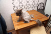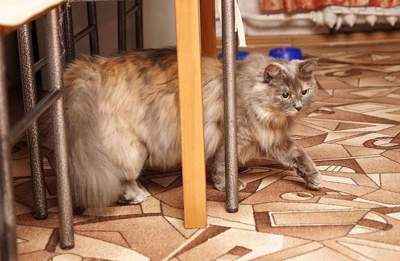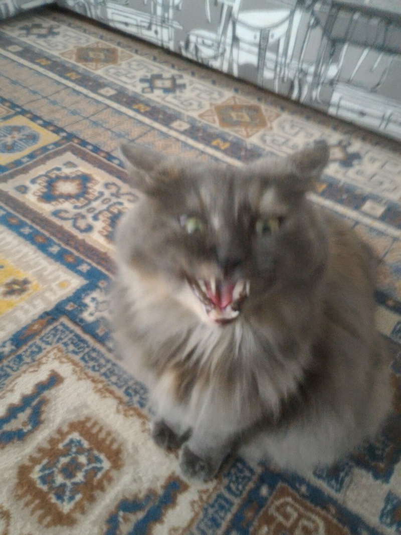 Малыш и Чили боятся , Микентию и Марте как то все-равно, ее воротничок всех в ступор вводит, она так быстренько передвигается, он качается, как абажурчик , я ее уже выпускала, Пиф сразу летела к чашкам с едой, кто стоял ел, отлетали задом . Ищет в основном еду, прям жестко так и полочки куда упаковаться. Лежанки сильно не понимает, игрушками интересуется если у носа хорошо покрутить. Характер смешной- и брыкается пока с ней процедуры проводишь, обижается и через пару минут требует что б ее гладили