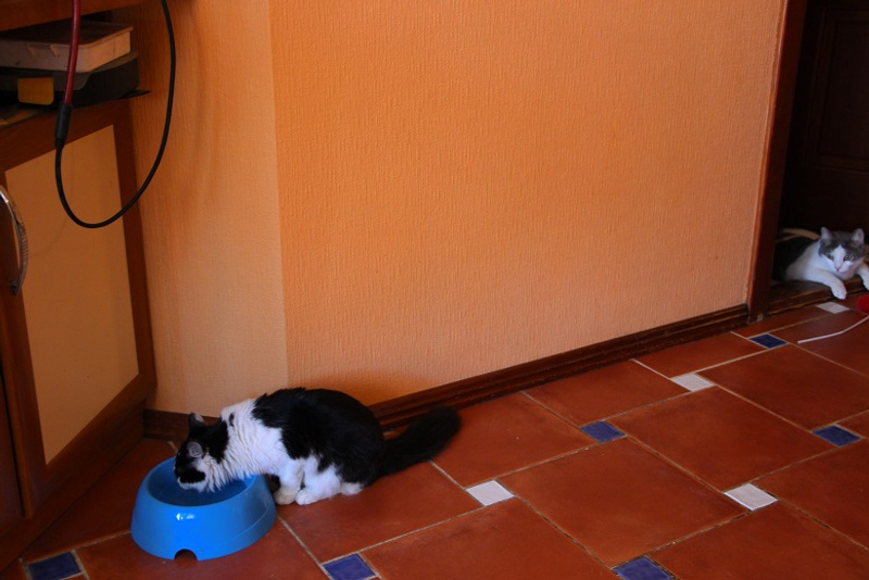 , попыталась правда между стеной и шкафчиком втиснуться , но там ее ждала пластиковая бутылка-загородка