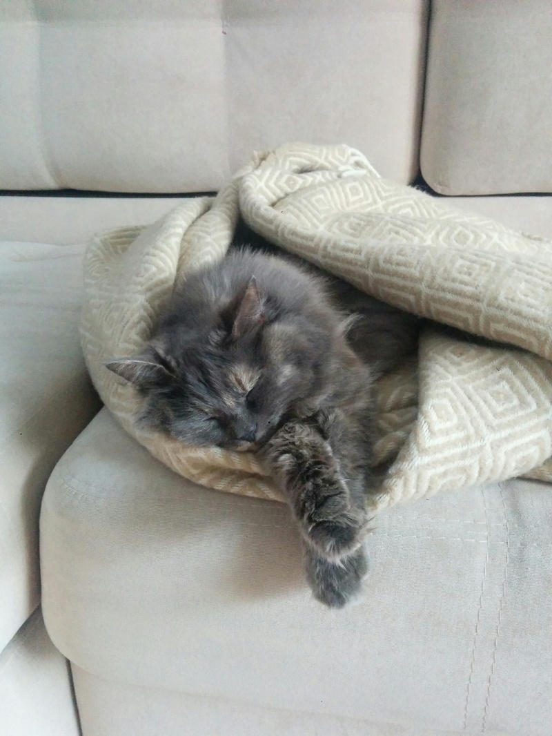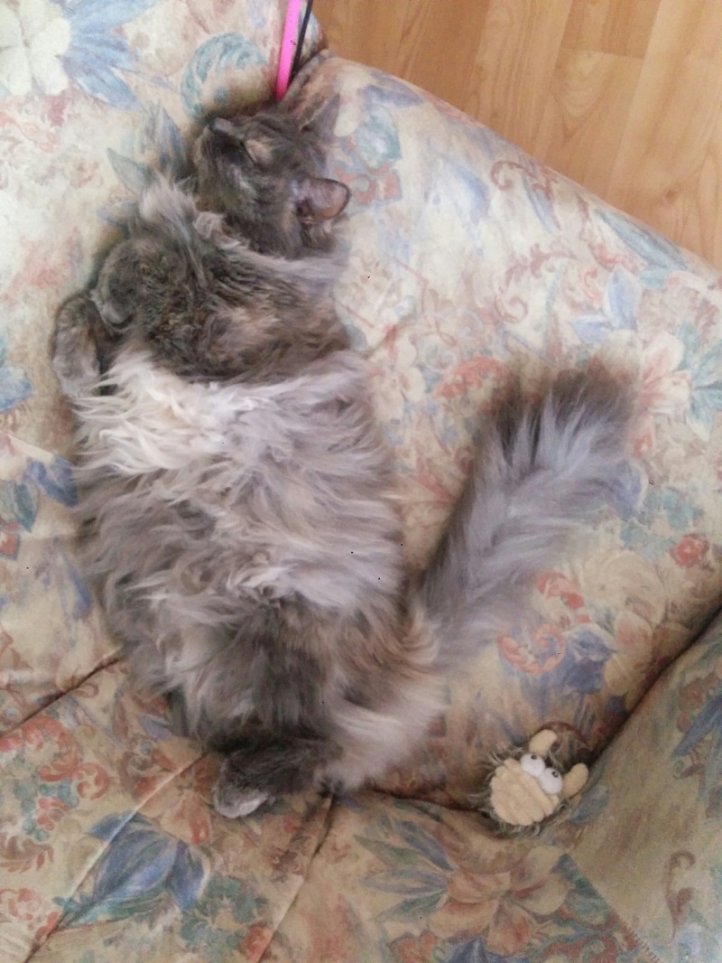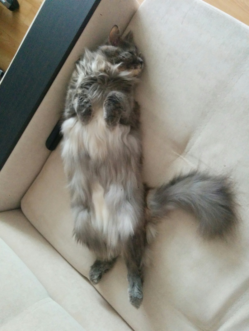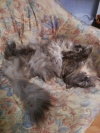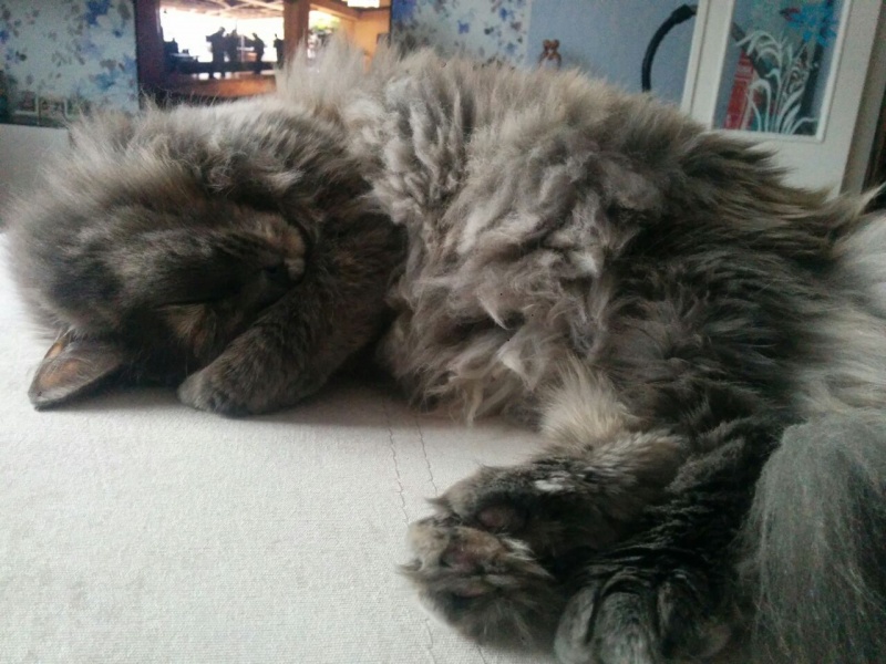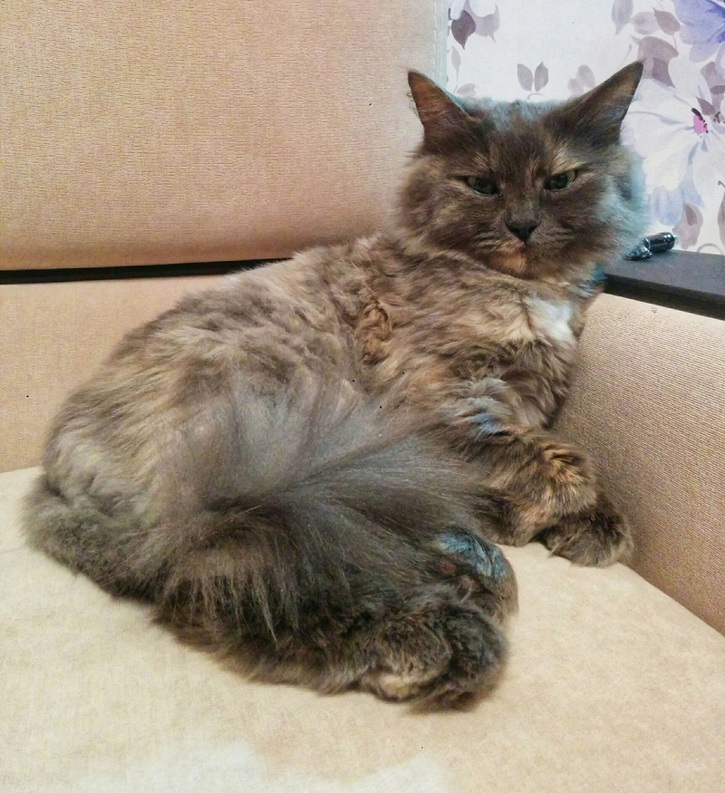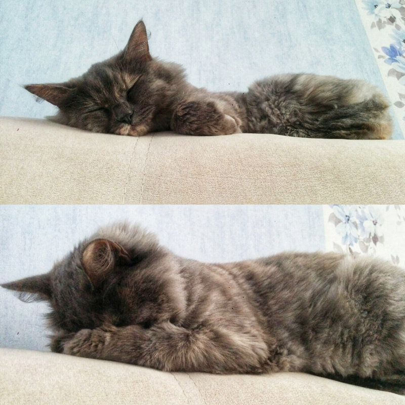а уж какие у нее колтунчики были . Шерсть , как у Сонечки-то же воздушная , шелковистая и когда шею чешешь, втягивает носик как мой Микус . Смешная и к расческе еще не привыкшая и как от наркоза отошла на пижаму шипела , до того она ей не понравилась