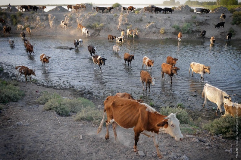 Похоже, быка ловят.Крутая рыбалка. Или там все же боров под карася косит?