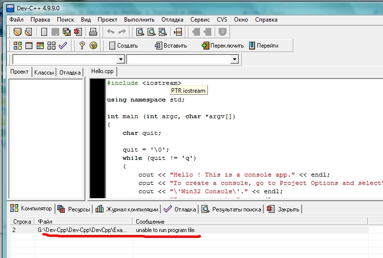 При компилировании любого файла возникает. Т.е никакая написанная программа гхм. не работает. Переустановка не помогает.