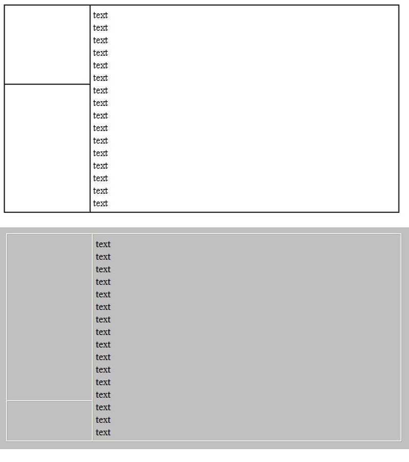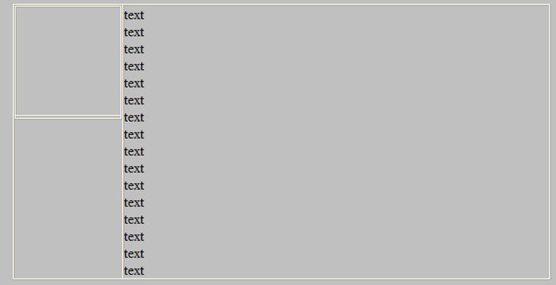 Указать что-то типа height="500" нижней левой ячейке не предлагать - очевидно, что содержимого в правой ячейке может быть сколько угодно, а слева могут быть фоны и проч.