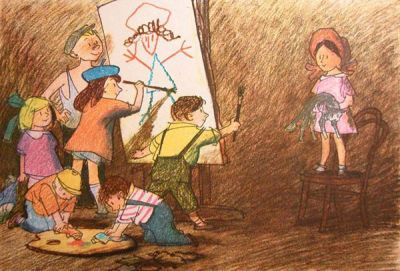 А когда Принцессе хотелось замуж, она устраивала репетицию: папильотки, тапки, фартук - и шла на королевскую кухню варить борщ. Через час желание как рукой снимало, и Принцесса возвращалась мечтать.
