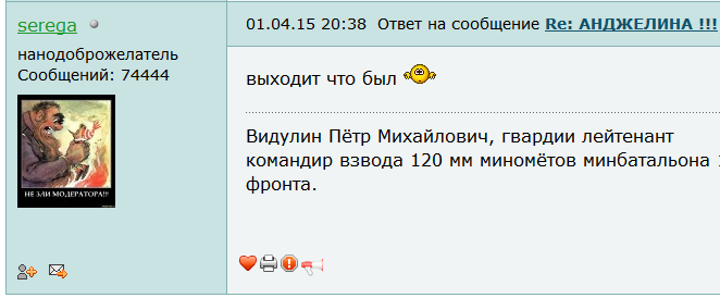 гранмерси.. Не будем останавливаться на достигнутом, впереди шалаш!Видулин Пётр Михайлович, гвардии лейтенант