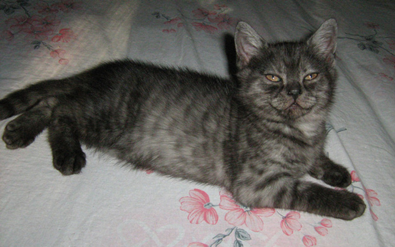 Наглая котовская морда с криминальным беспризорным детством и полным отсутствием авторитетов! Даже 50-киллограмовую псину мою и то с первого дня строить начал! Отдельная тема, короче