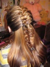 постоянно стараюсь придумать что нибудь новенькое, стараюсь отойти от однообразия! Я максимально делала прическу за 650 р. и то потому что на другой конец города в 6 утра ездила.И подумала надо систему менять
