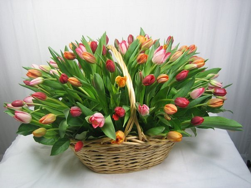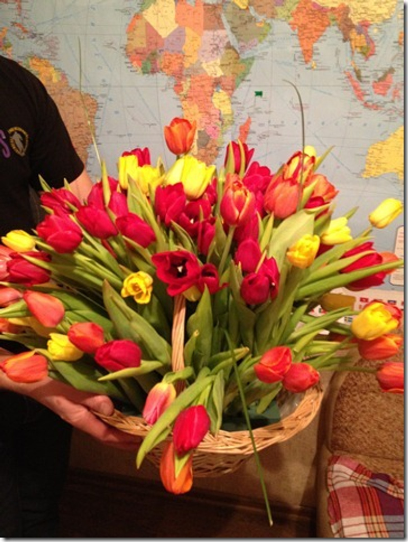Заказала маме на 8 Марта корзину тюльпанов из 101 цветка, оплатила все заранее.