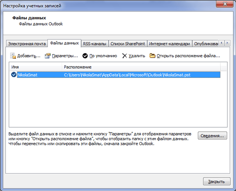 Ответ на сообщение удалить файл данных из Outlook'а пользователя Волька ибн Алёша