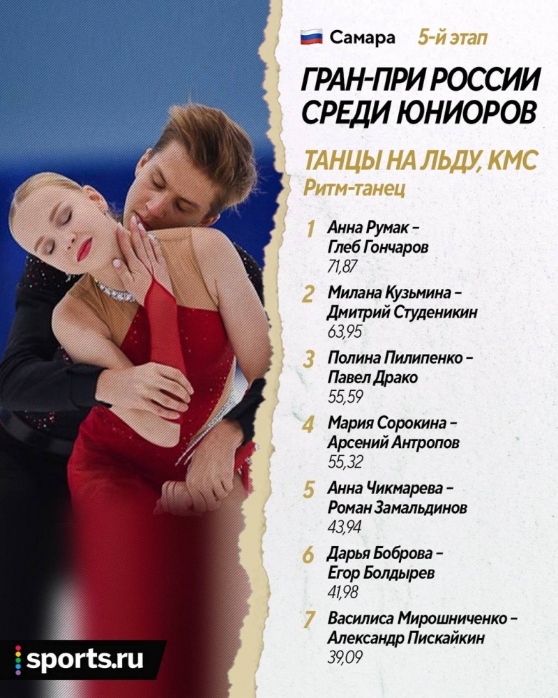 Анна Румак и Глеб Гончаров выиграли ритм-танец на этапе Гран-при России по фигурному катанию среди юниоров в Самаре