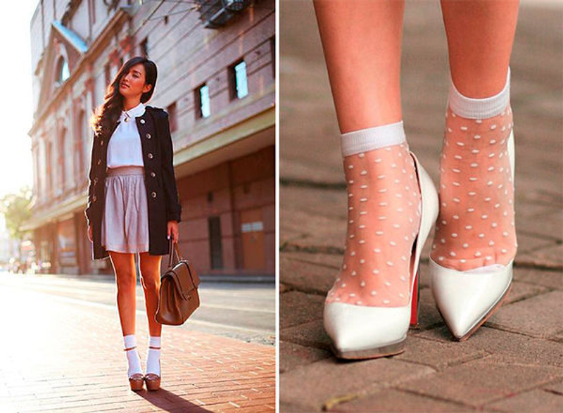 девочки давно носки к открытым туфлям подбирают всякие красивые.ну так то в сэсэсээр многие так ходили
