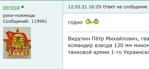 выражаю благодарность, с занесениемВидулин Пётр Михайлович, гвардии лейтенант