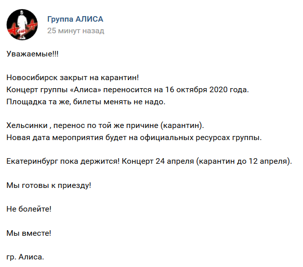 Кинчев-то готов выйти из леса, вот только площадки принять не готовы, ни в Нске, ни в Хельсинки. Пока держится Екатеринбург, но не факт, что и там переноса не произойдёт...А жизнь длиннее не становится, и чё нам делать - застрелиться?