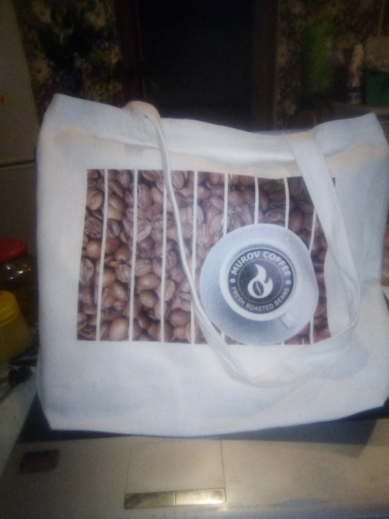 (на обжарку ездила сегодня, ну и владелец всего-всего надарил, да еще и упаковал в красивую котомочку, теперь есть с чем на базар ходить )