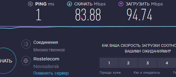 • Если подключен вот такой голый интернет, то результат должен в дневное время быть примерно как и у меня: