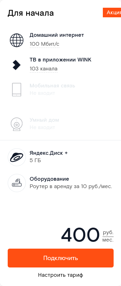Ростелеком мне сходу выдаёт для новых абонентов предложение "Для дома" - "Все вместе" стоило чуть тут обсудить :biggrin: