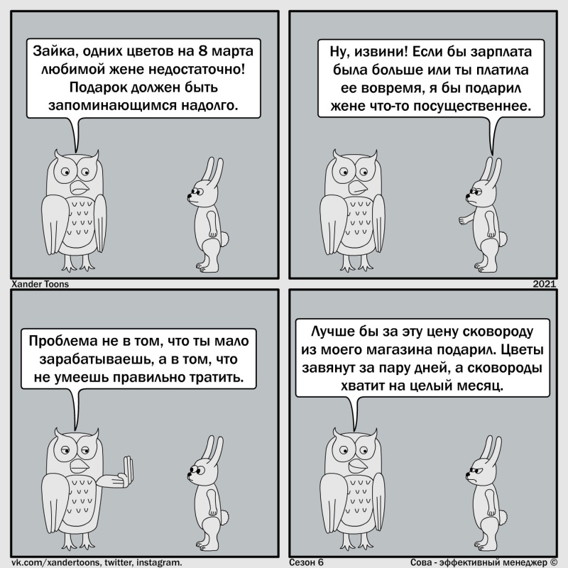 С таким мужем попробуй не постряпать. И сковородка не поможет.