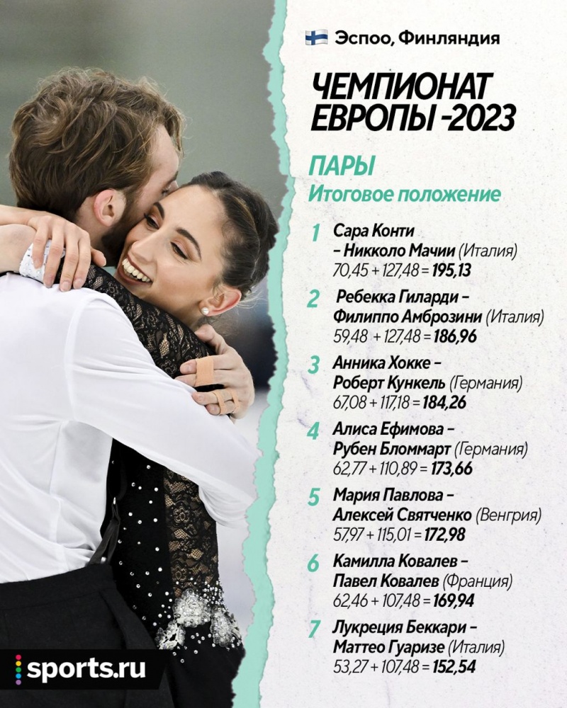 Итальянцы Сара Конти и Никколо Мачии – новые чемпионы Европы в спортивных парах.