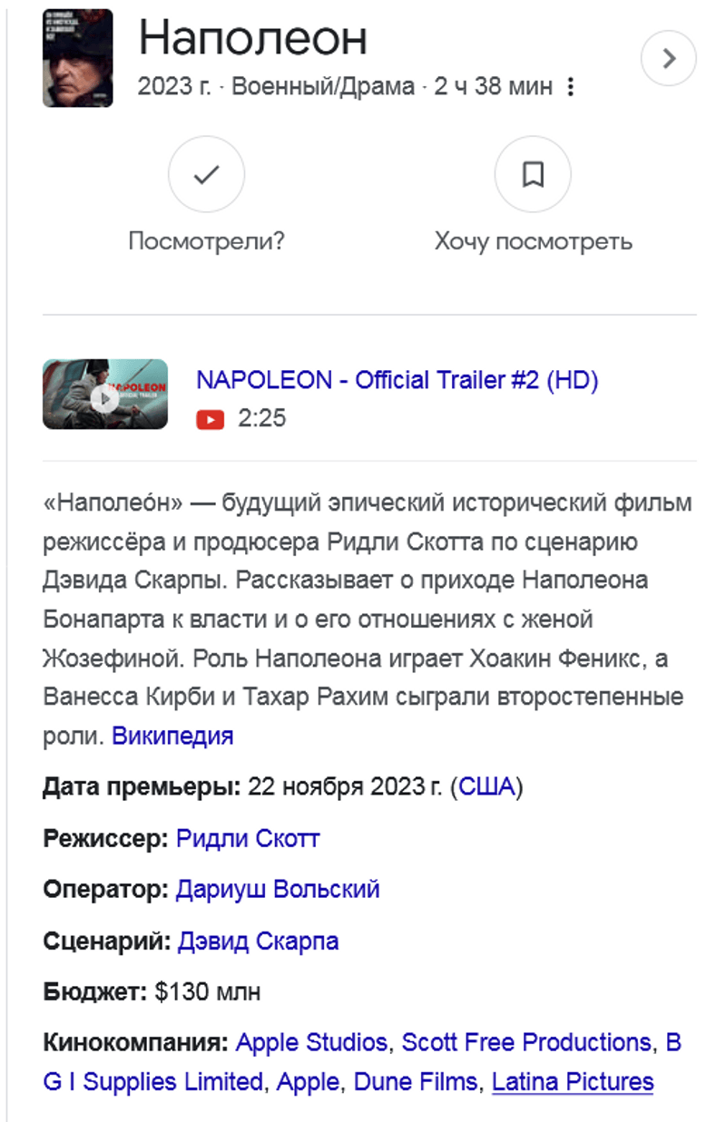 в смысле Наполеон Риддли Скотта? так он только 23 ноября выходит