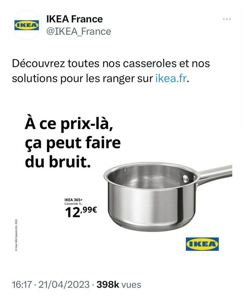 сейчас они кастрюлями стучат, а икея и кто-то ещё под это рекламируется