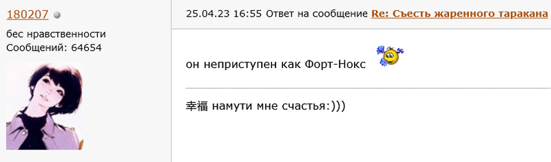 Ответ на сообщение Re: Съесть жаренного таракана пользователя 180207