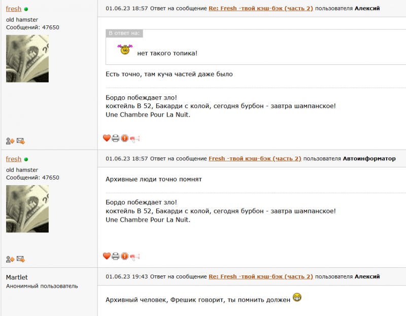 Ответ на сообщение Re: Фрешу пользователя fresh