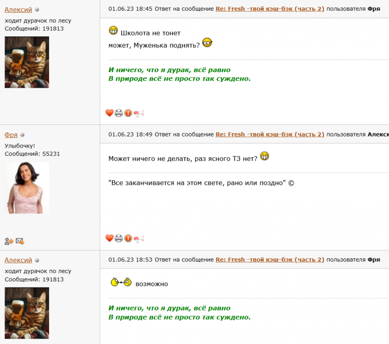 Ответ на сообщение Re: Фрешу пользователя Алексий