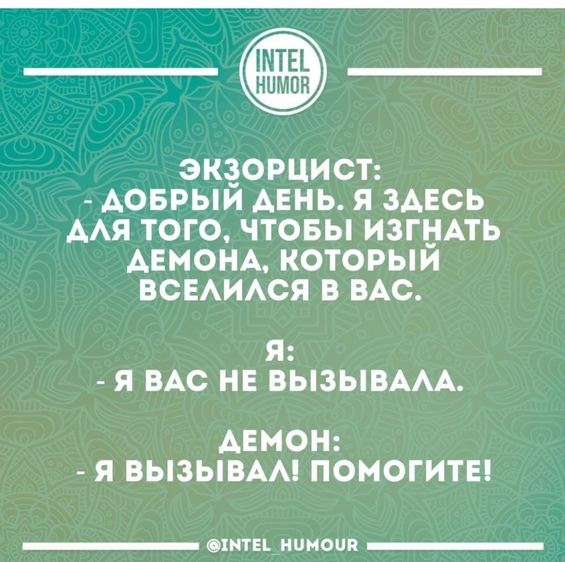 Сиди дома, вызываю к тебе бригаду экзорцистовПро демонов и экзорцистов.![]()