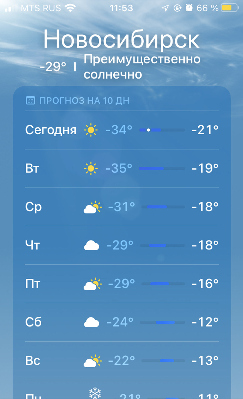 За городом существенно холоднееИскитим час назад встретил с -37°, морозный туман