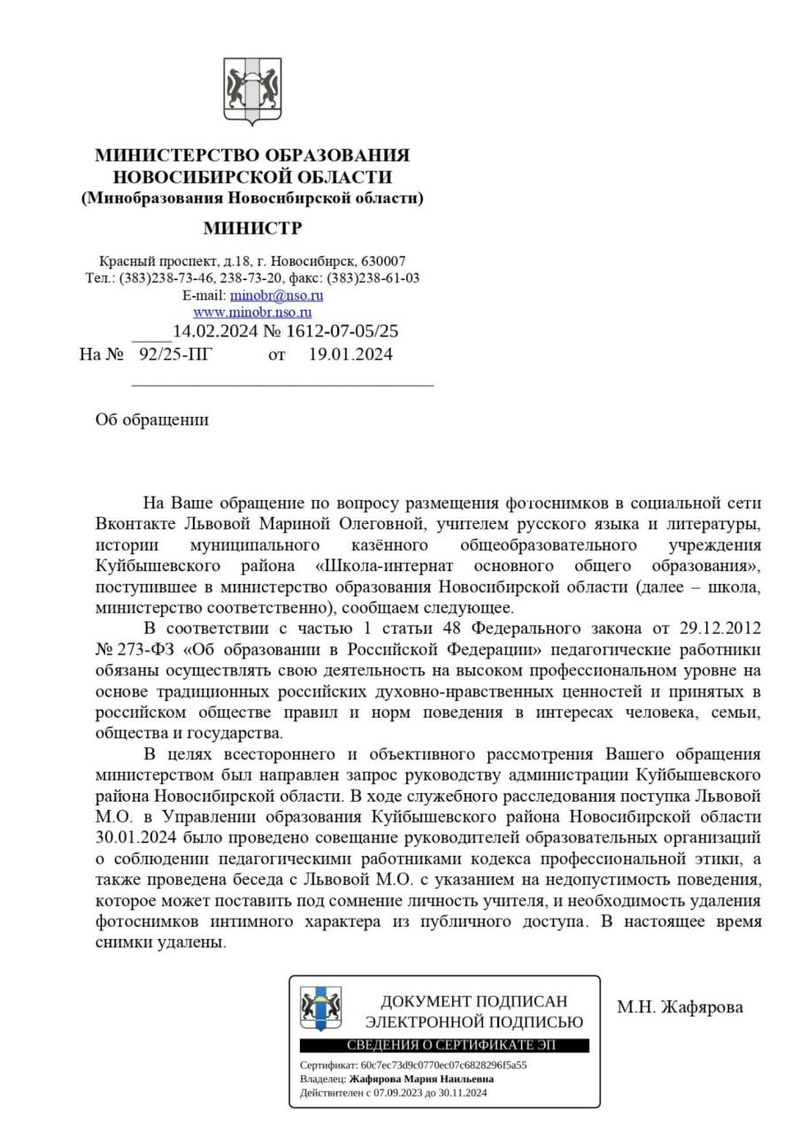 так целое министерство учительницу гнобило, а оно ошибаться не может - как же об этом можно вслух?А жизнь длиннее не становится, и чё нам делать - застрелиться?